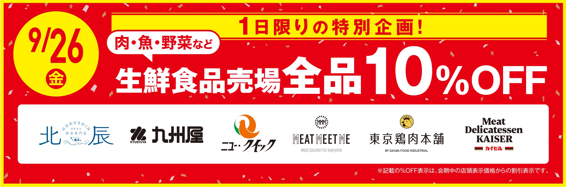名称:1日限りの特別企画!「生鮮食品売場全品10%OFF」