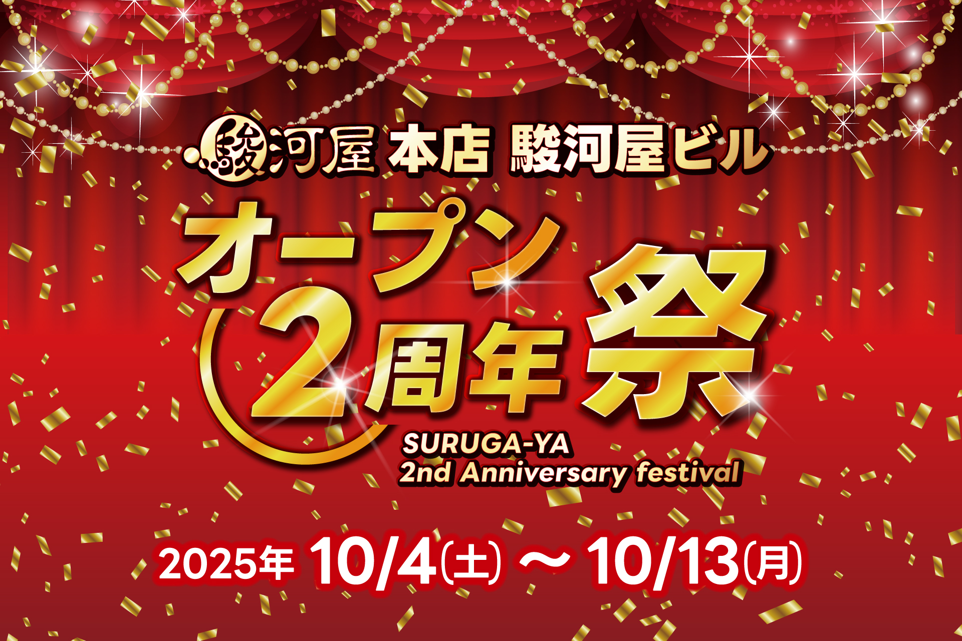 アニメ・ホビー系商材を中心に様々な商材を扱う「駿河屋 本店 駿河屋ビル」(所在地:静岡市葵区)が、このたびオープン2周年を迎えます。
