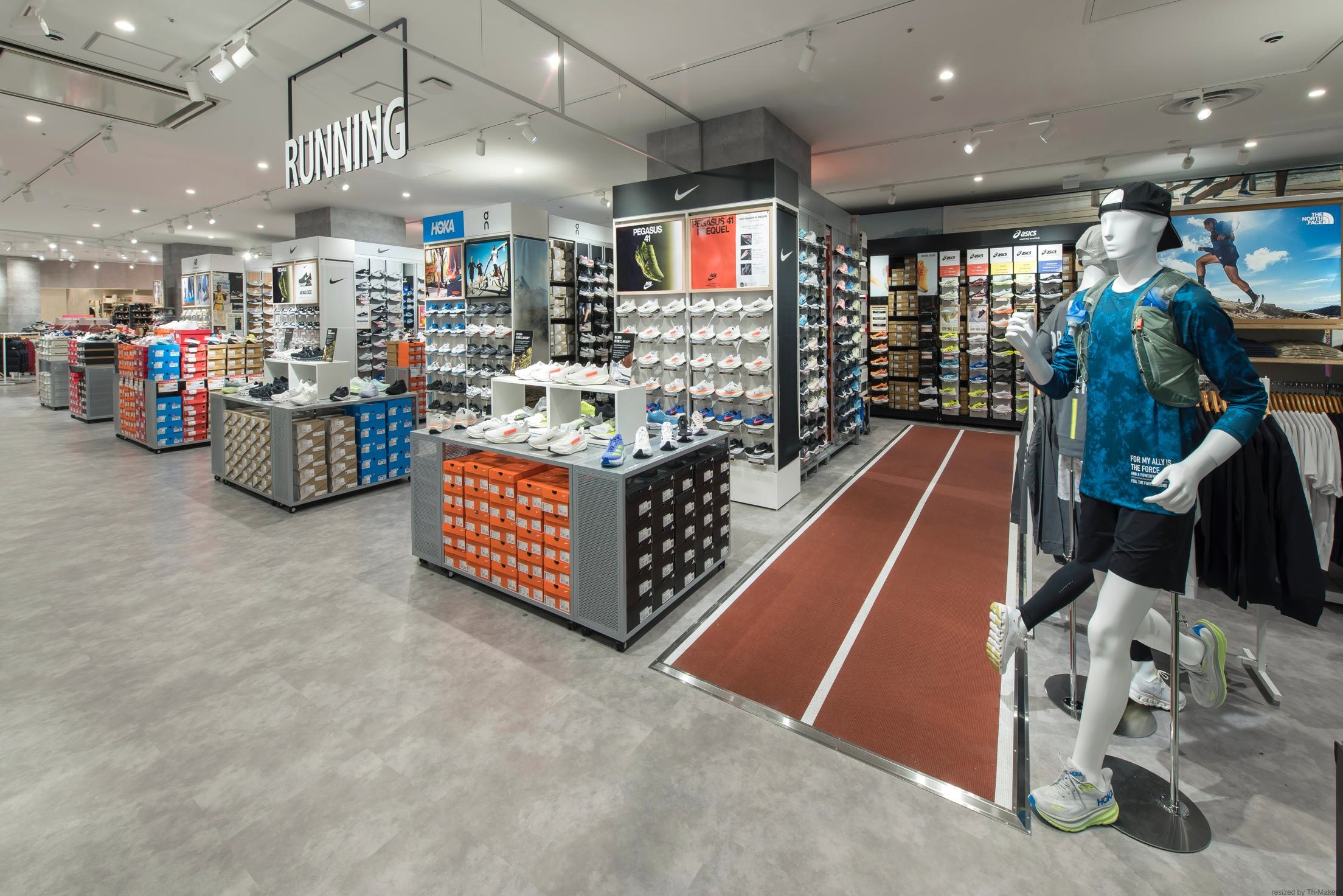 ナイキ、アディダス、ニューバランス、アンダーアーマー、プーマ、オークリーなど、人気ブランドのアイテムを豊富に取り揃えました。メンズとレディスに分かれた売場では、それぞれに合ったアイテムをゆったりとご覧いただけます。