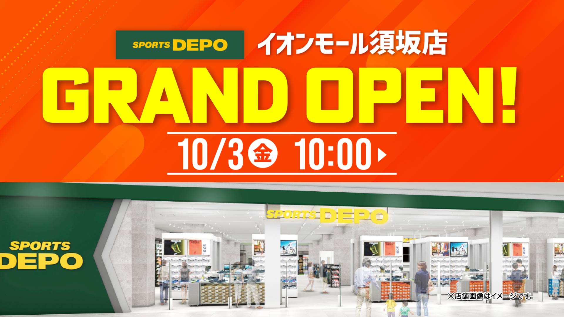 スポーツ用品販売の株式会社アルペン(本社:愛知県名古屋市、代表取締役社長:水野 敦之)は、長野県最大級の商業施設として誕生する「イオンモール須坂」内に、「スポーツデポ イオンモール須坂店」を2025年10月3日(金)にグランドオープンいたします。