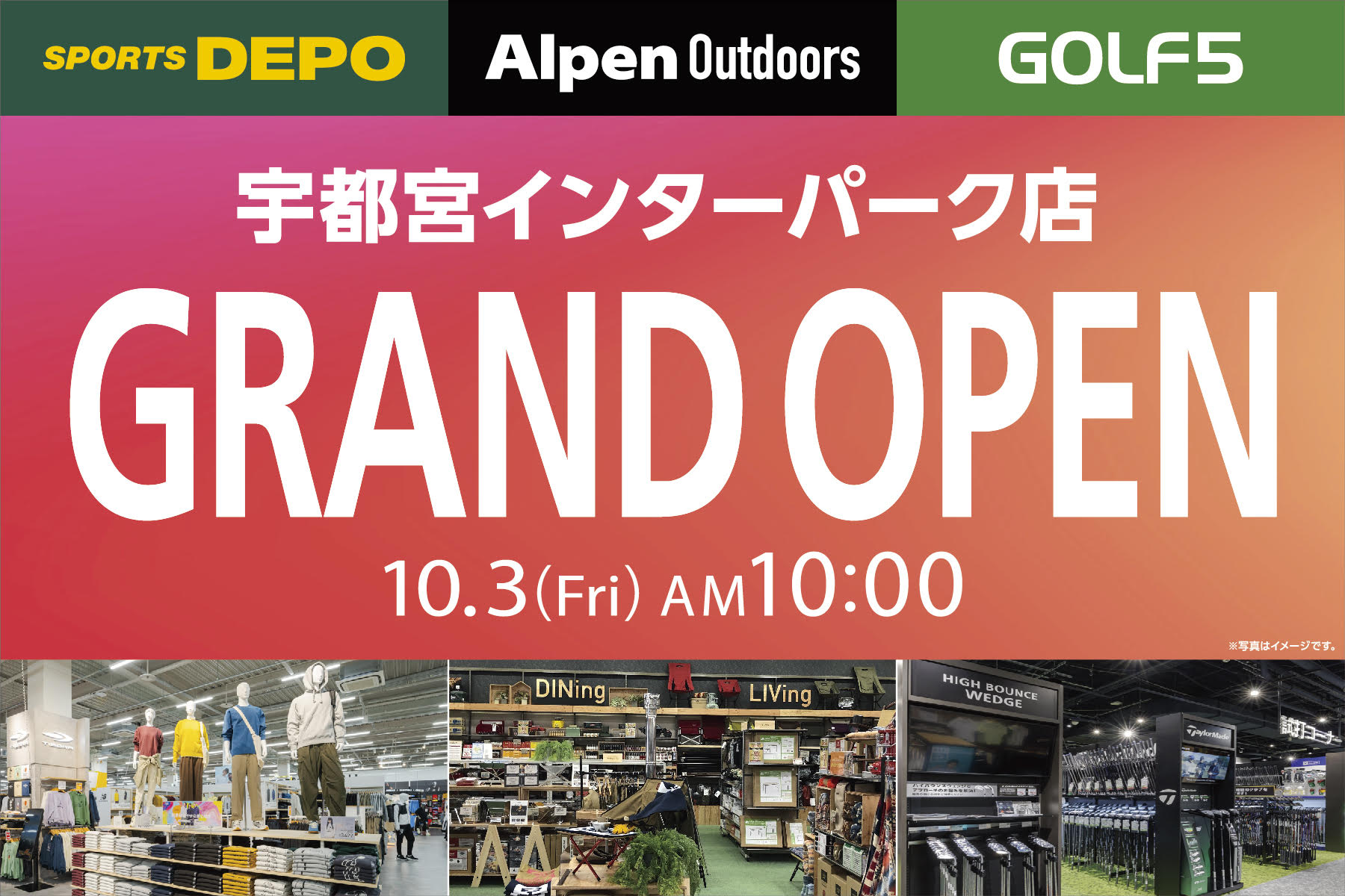 スポーツ用品販売の株式会社アルペン(本社:愛知県名古屋市、代表取締役社長:水野 敦之)は、2025年10月3日(金)宇都宮インターパークに「スポーツデポ・アルペンアウトドアーズ・ゴルフ5」の3店舗を同時オープンいたします。スポーツデポ店内には栃木県初出店のアルペンアウトドアーズが併設されます。宇都宮インターパーク1つの施設でスポーツ・アウトドア・ゴルフ用品の全てを揃えることができます。
