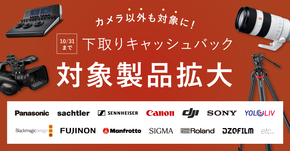 通常は当社指定のカメラのみ対象ですが、三脚やスイッチャーなど、人気メーカーの商品もおトクに購入できるチャンス。