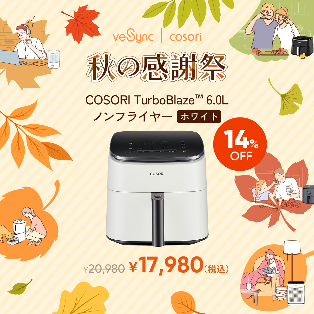 商品ページ:https://vesync.jp/products/cosori-turbo-blaze-6l-air-fryer?variant=46905393840371