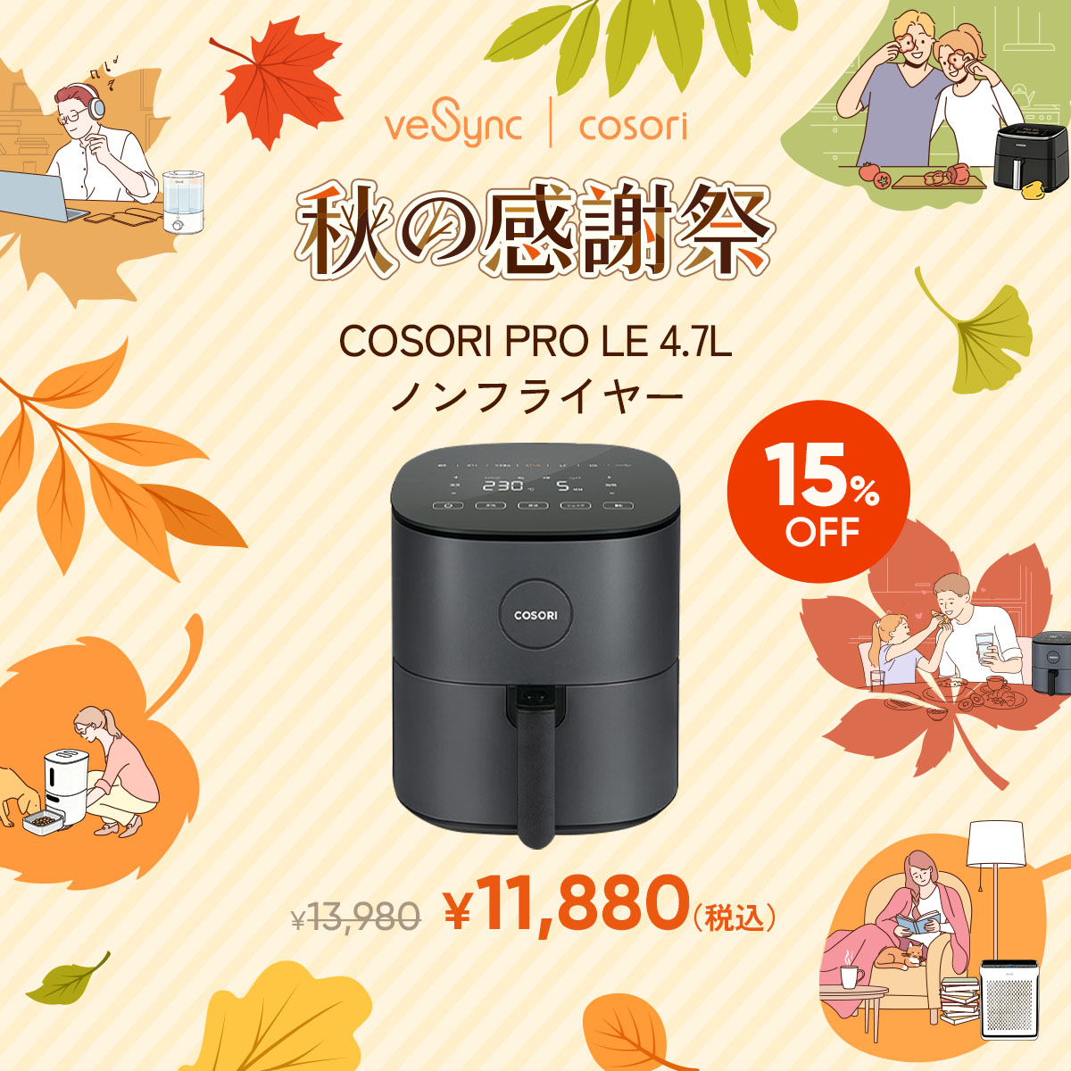 アメリカ発の小型家電メーカーVeSync(ウィーシンク)の日本法人、Vesync Japan株式会社(本社:東京都千代田区、以下VeSync)は、2025年10月4日(土)から10月15日(水)までの期間中、「秋の感謝祭セール」を開催します。セール期間中は、秋にぴったりの家電製品を最大55%OFFでご提供いたします。