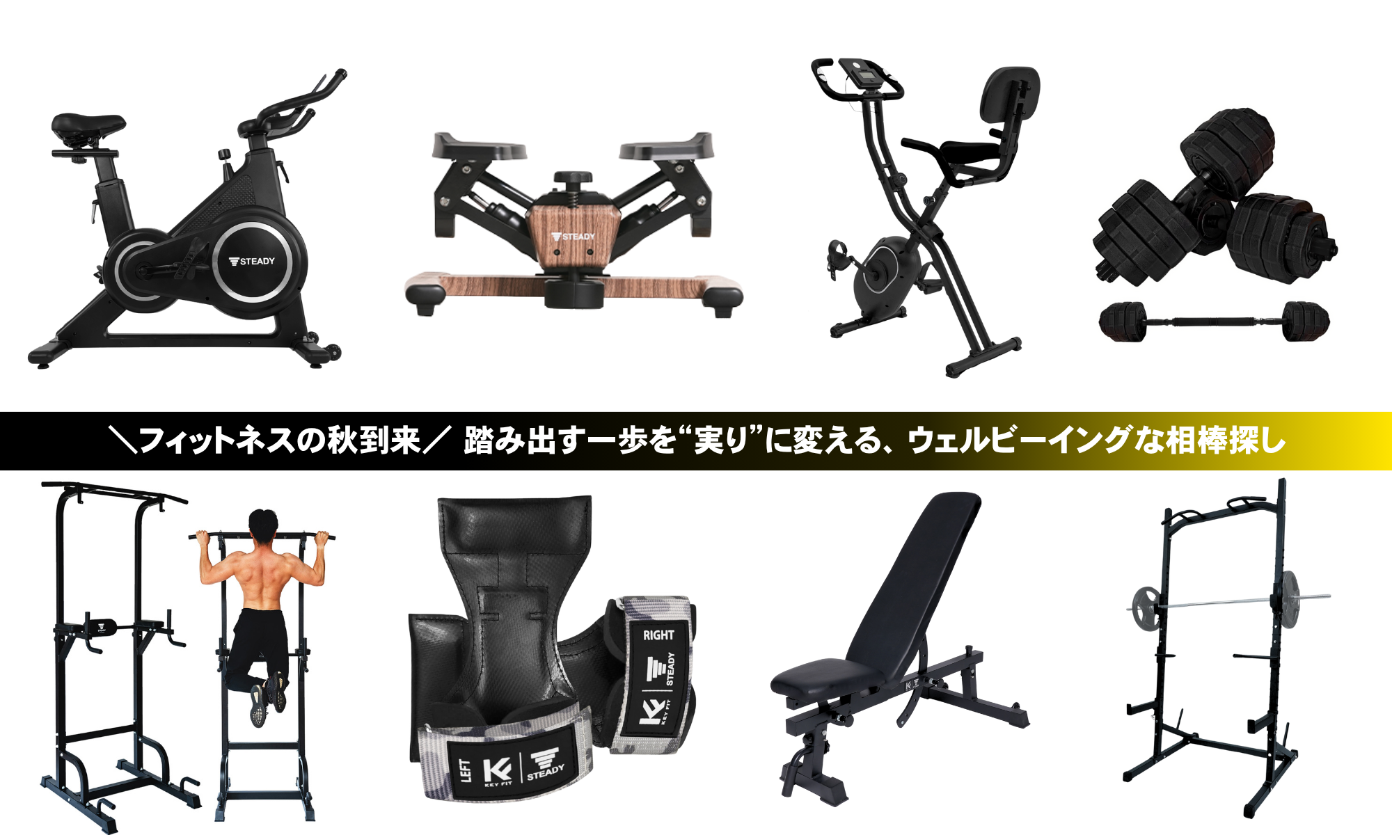 高負荷トレーニングの質にこだわり、ホームジムを充実させたい方には、JBBFオールジャパン2大会連続優勝のトップボディアスリート・久野圭一選手と共同開発した「Ultimate Gearシリーズ」がおすすめ。久野選手の視点で磨き上げられた「クロスグリップ」、「クロスベルト」、「クロスベンチ」の3製品が、トレーニング中の集中を高め、パフォーマンスを次のレベルへと押し上げます。さらに、本格的に寒くなる前に自宅のトレーニング環境を万全に整えたい方には、自宅でジム級の高重量 / 自重トレを可能にする「STEADY ハーフラック」や、頑強設計の懸垂マシンでありながら充実のハーフラック機能も搭載した「STEADY ラック型懸垂マシン」も特別価格でご用意。より省スペースに賢くホームジムを作りたい方や本格的な家トレに少しずつ挑戦していきたい方には、あらゆる自重トレを可能にする「STEADY マルチ懸垂マシン」や、アタッチメントでバーベルやケトルベルとしても使えて、多彩な全身トレーニングを実現する「STEADY ダンベル」もおすすめです。