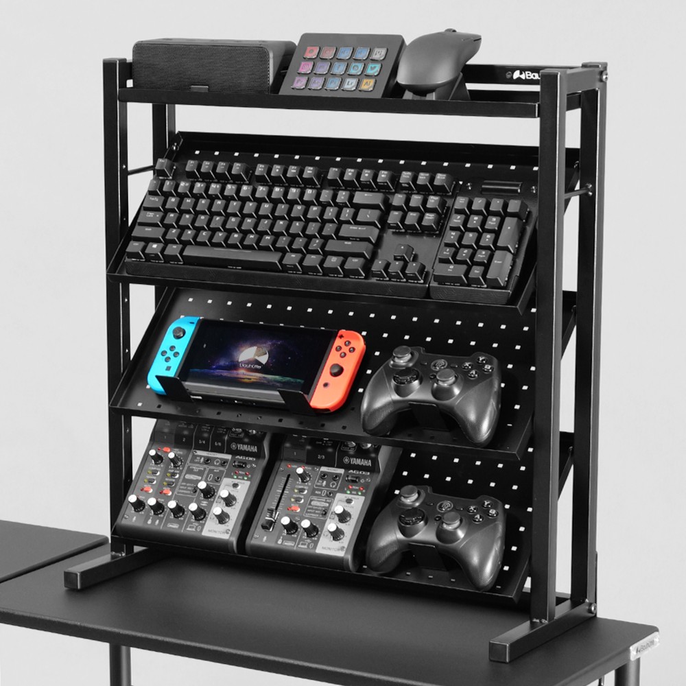 デスク横で『魅せる』デバイス収納、角度調節できる卓上ディスプレイラック