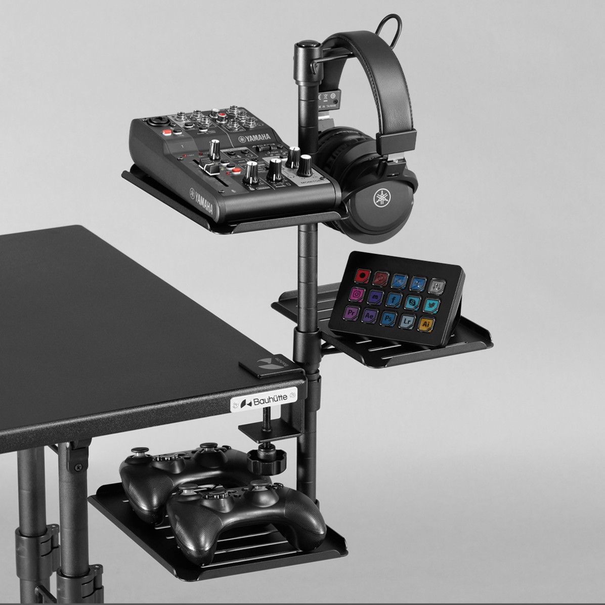 「浮かせる収納」でデバイスすっきり、クランプ式の卓上スタンド