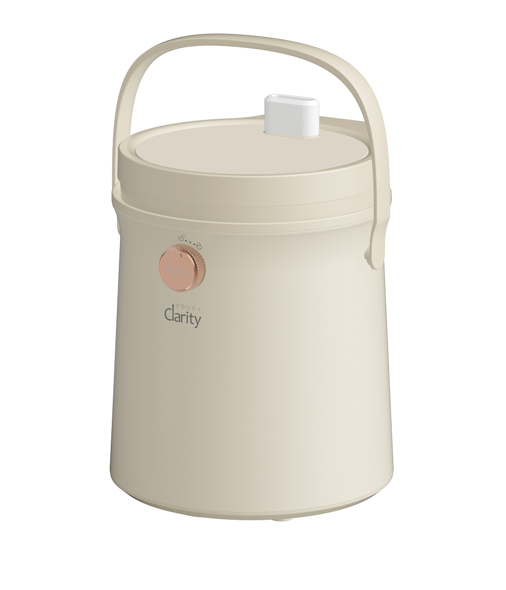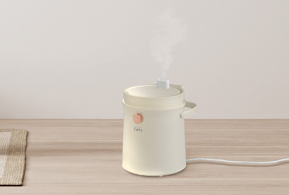 クラリティのスチーム式加湿器「クリーンポット」なら水にぬれる部分は丸洗いでき、3.0Lのタンクでたっぷり加湿します。広口仕様のタンクは給水しやすく、コンパクトなので部屋間の移動もラクラク。二重蓋構造で沸騰時の音も気になりません。