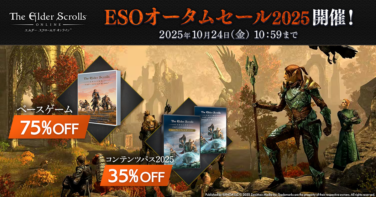 『エルダー・スクロールズ・オンライン』DMM日本語版「ESOオータムセール2025」開催中! 「ベースゲーム」と「コンテンツパス」をお得に購入するチャンス!