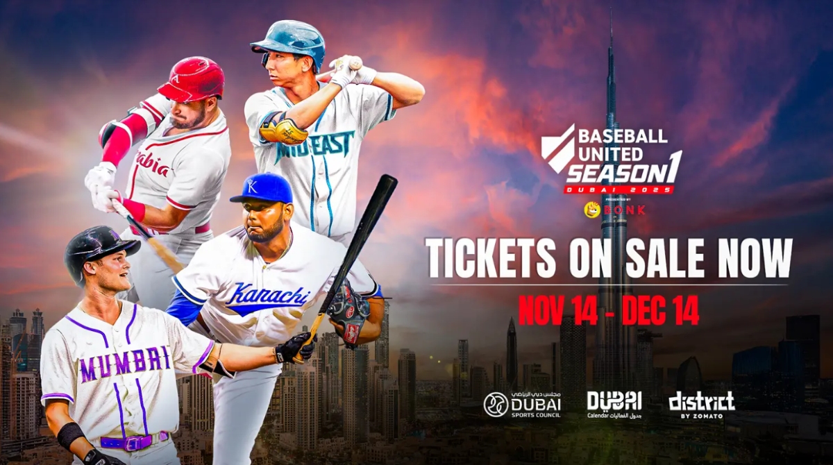 2025年11月14日から12月14日まで、中東・インドおよび南アジア初のプロ野球リーグ「ベースボール・ユナイテッド(Baseball United)」の記念すべき初シーズンが開幕。ドバイの「ザ・セブンズ・スタジアム (The Sevens Stadium)」内にある「ベースボール・ユナイテッド・ボールパーク(BU Ballpark)」で開催されます。