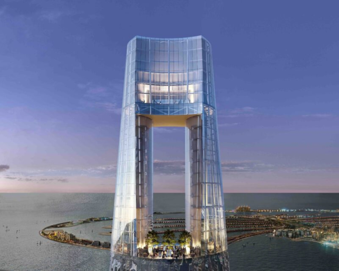 高さ365メートルを誇り、世界一の超高層ホテルとして2025年11月に開業予定の「シエル・ドバイ・マリーナ(Ciel Dubai Marina)」。この82階建てのラグジュアリーな5つ星ホテルには、1,000室を超える客室とスイート、3つのレストラン、世界一の高度のインフィニティプール、フィットネスセンターやスパ、クラブラウンジ、そしてドバイ・マリーナやパーム・ジュメイラ、アラビア湾を一望できる360度パノラマ展望デッキを備えています。