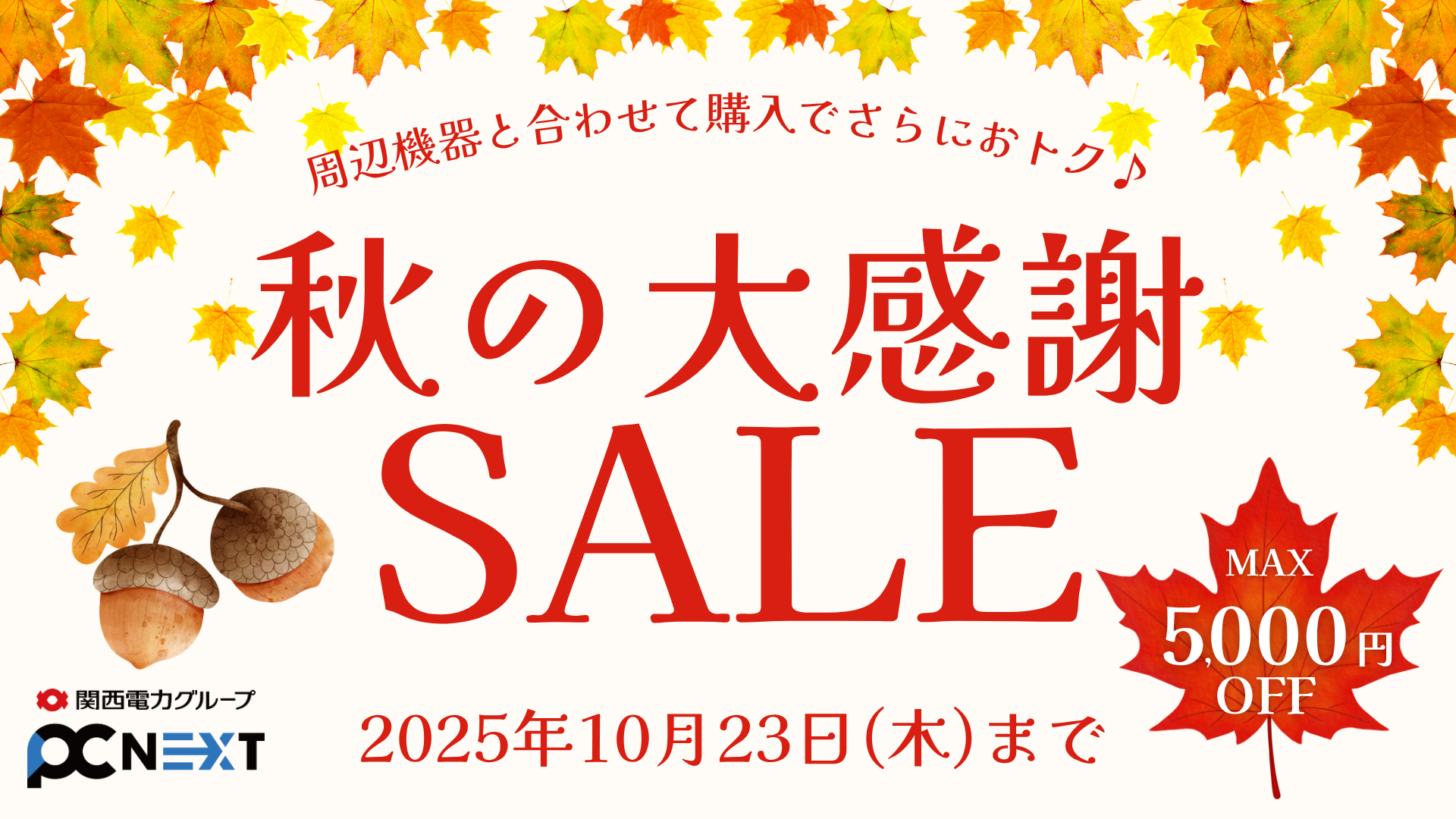 関西電力グループの株式会社ポンデテック(本社:大阪府大阪市、代表取締役:財津和也)は、公式通販サイト「PC next」にて、2025年10月17日(金)~10月23日(火)の7日間、「秋の大感謝セール」を開催します。