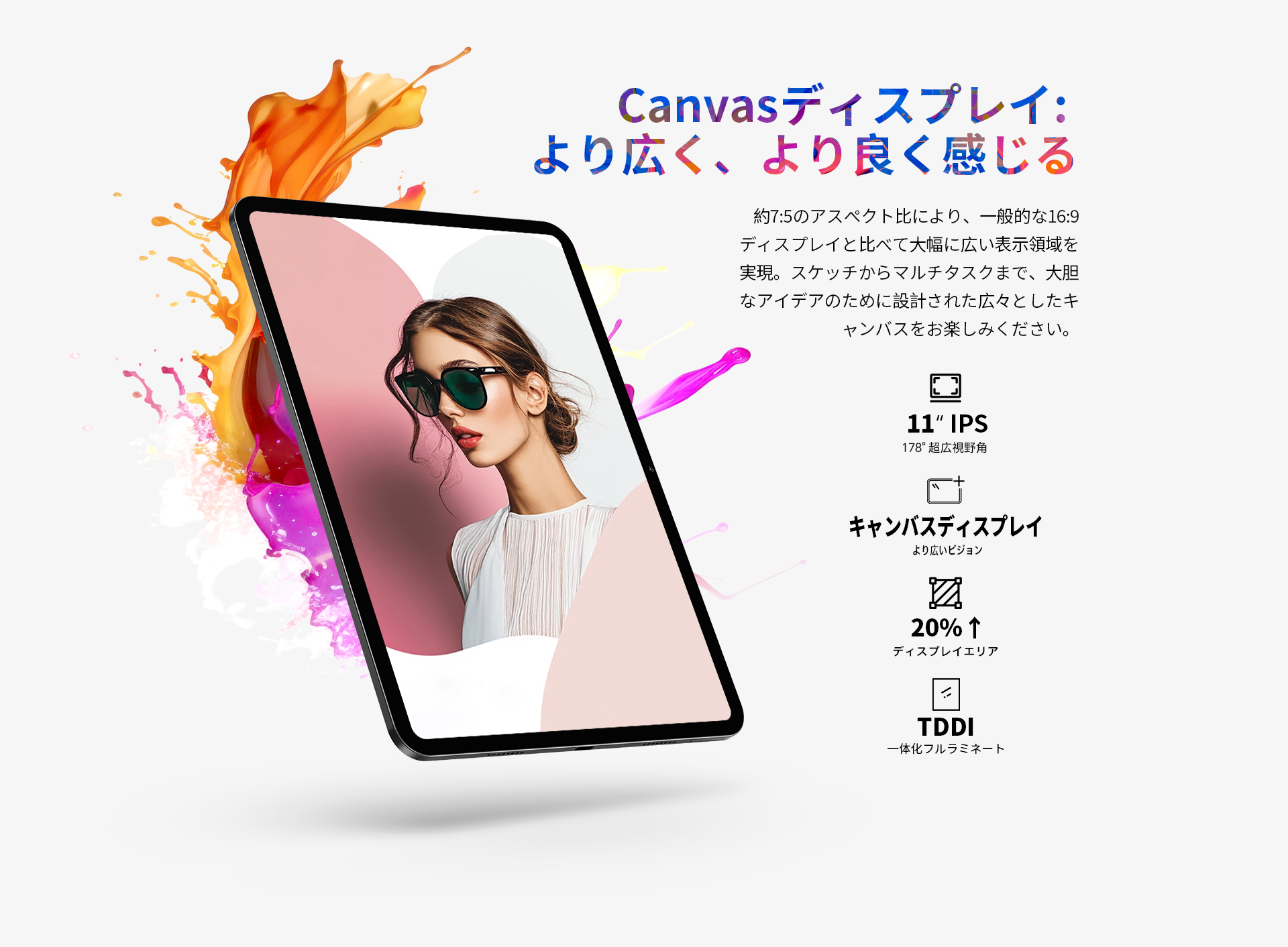 Teclast ArtPad Airの本体厚はわずか7.3mm、重量は520g以下に抑えられています。携帯性に優れ、軽量な手触りでありながら、洗練されたデザインと大画面の快適さが融合し、上質なビジュアル体験をもたらします。