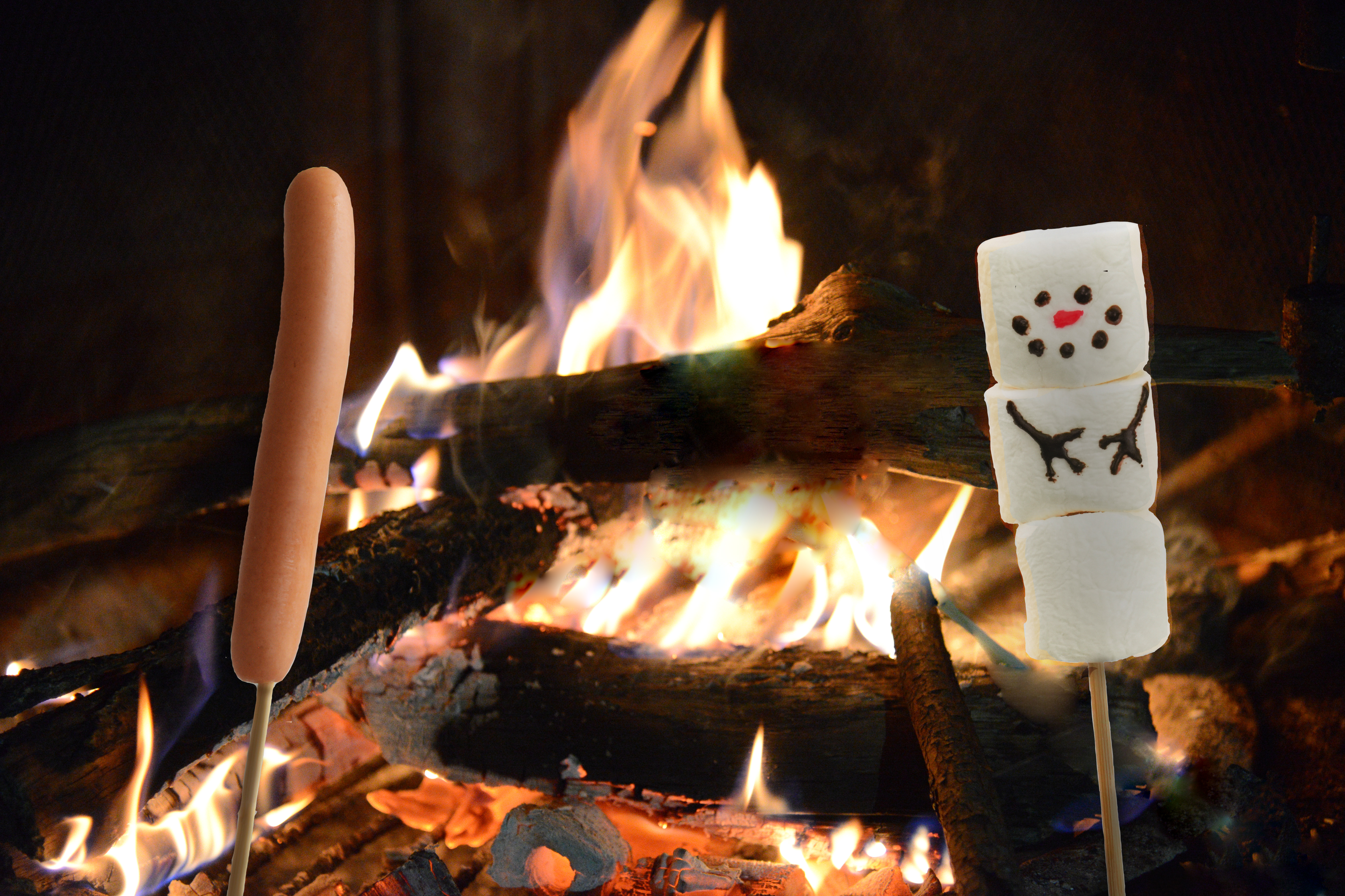 <火ュッゲナイト おすすめフード>フランクフルト 450円(うでっこき)、スノーマシュマロ 400円(10+Flowers)