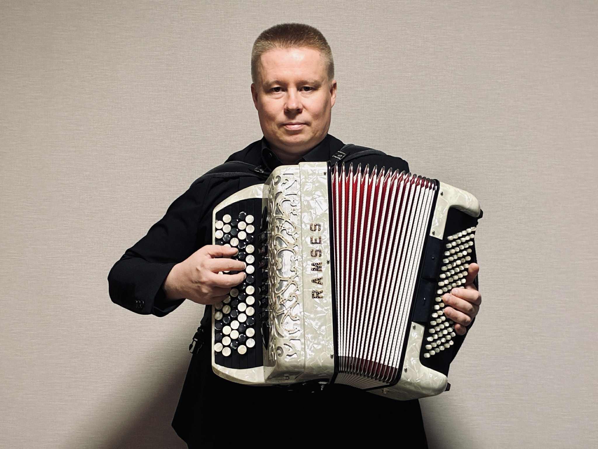 フィンランド東部・カレリア地方の伝統音楽に深く根ざしたハーモニカ奏者。実在するダンス音楽やカンテレ、アコーディオン、ヨウヒッコ(弓で弾く伝統弦楽器)などの伝統をもとに、アメリカ南部の古いハーモニカ奏法を融合させた“架空のカレリアン・ハーモニカ音楽”を創り出している。東カレリアとミシシッピが交錯するその音世界は、古代的な旋律と即興性に満ち、常に「踊りのリズム」に根ざしている。特別なチューニングを施した低音のブルースハーモニカを使用し、力強くも深みのある独自のサウンドを奏でる。