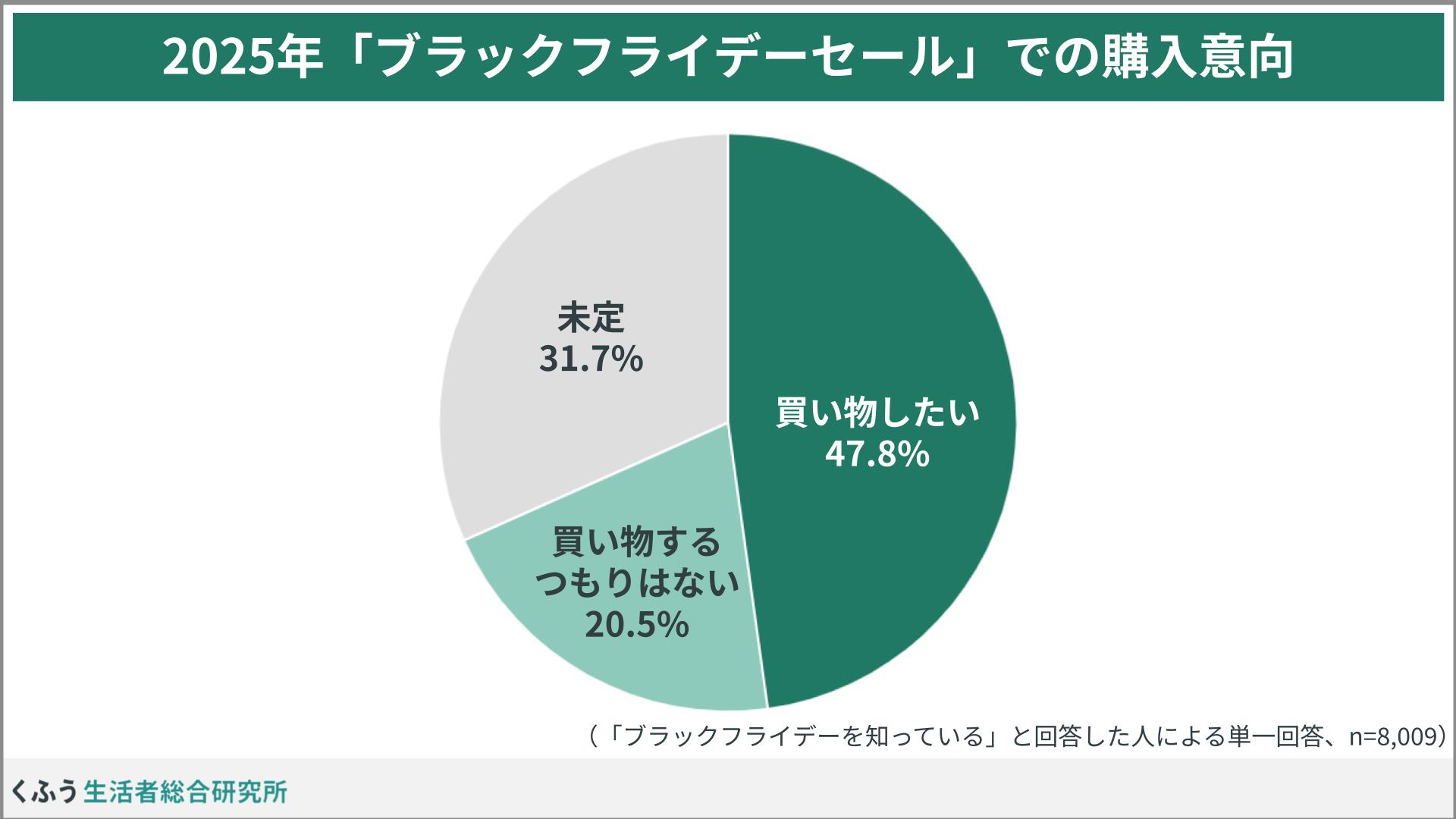 ブラックフライデーセールでの購入意向をたずねたところ、約半数(47.8%)が「買い物したい」と回答しました。