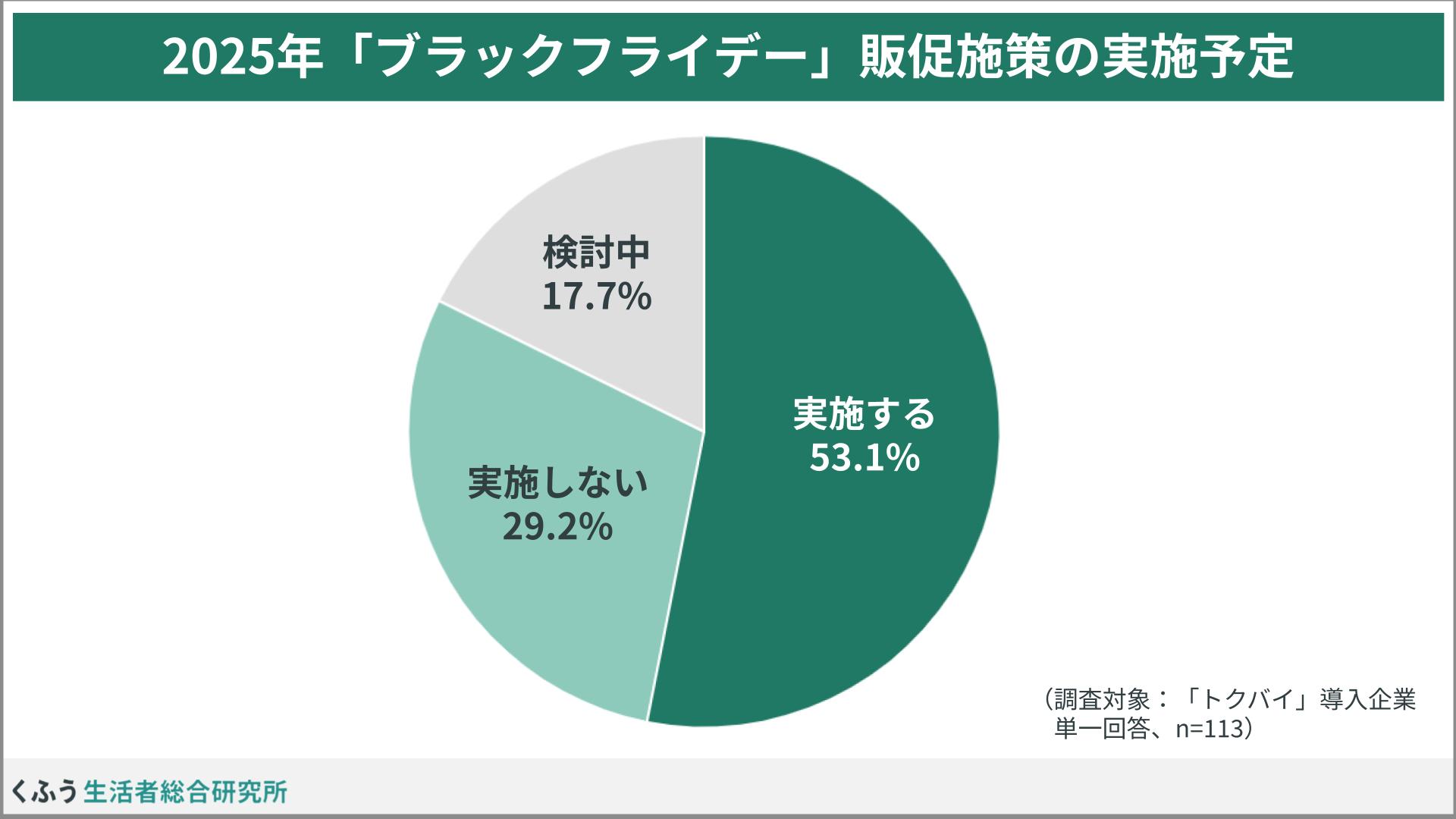 スーパーマーケットをはじめとする「トクバイ」導入企業に2025年のブラックフライデーに販促施策を実施するかと聞いたところ、半数以上の企業が「実施する」と回答しました。