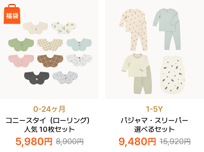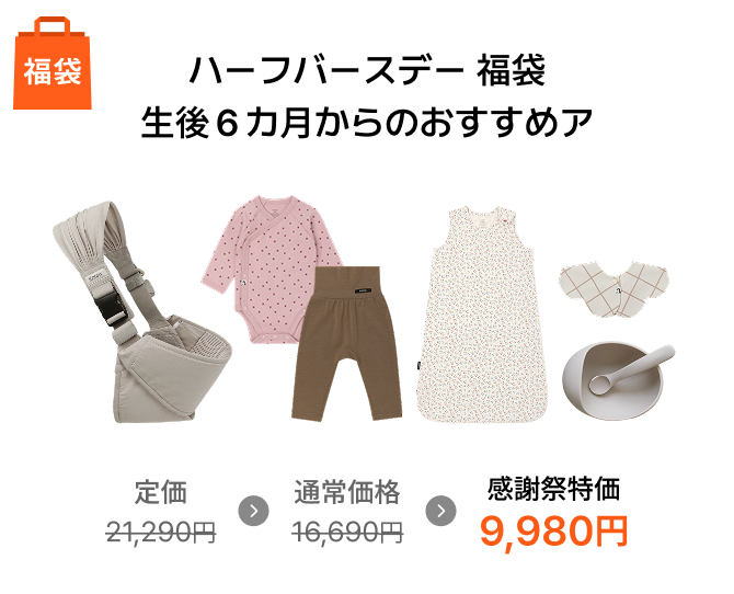 出産準備セット、ハーフバースデーセット、スタイ10枚セット、パジャマセットなど、人気&育児の必需品セットをよりお得な価格でご用意しました!