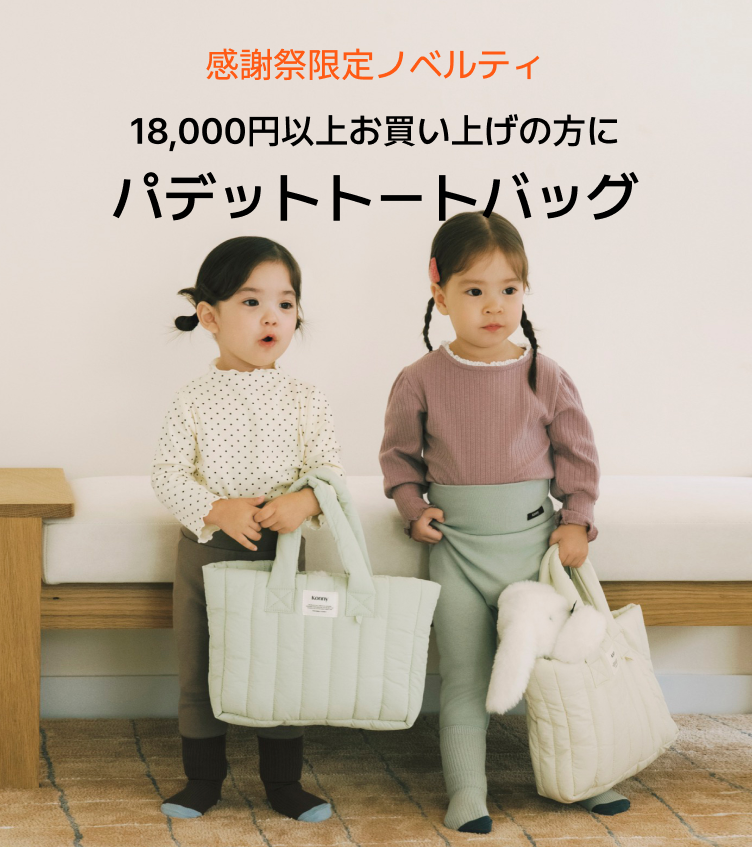 18,000円以上の購入で、先着1,800名様にB5サイズのパデットトートをプレゼント。お子さまのおもちゃや、タブレット、絵本等を入れられます。