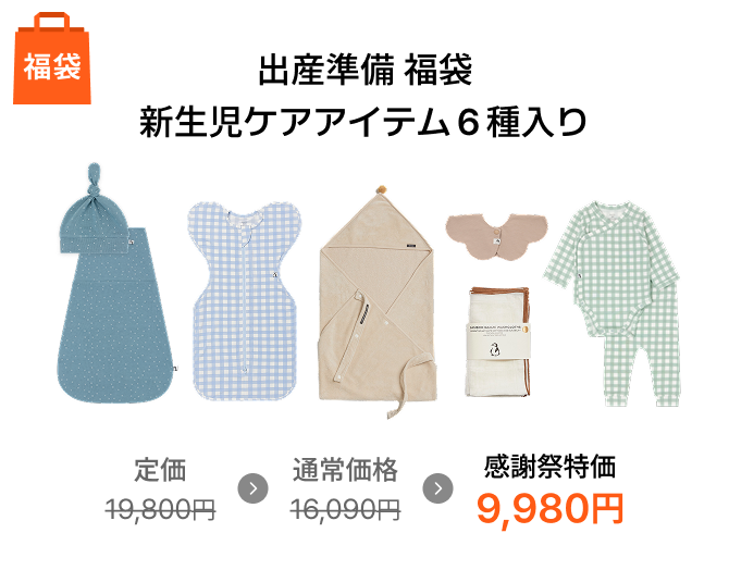 7日間限定、出産準備セットやスタイ福袋も特別価格で登場! W感謝クーポンやノベルティプレゼントも実施。