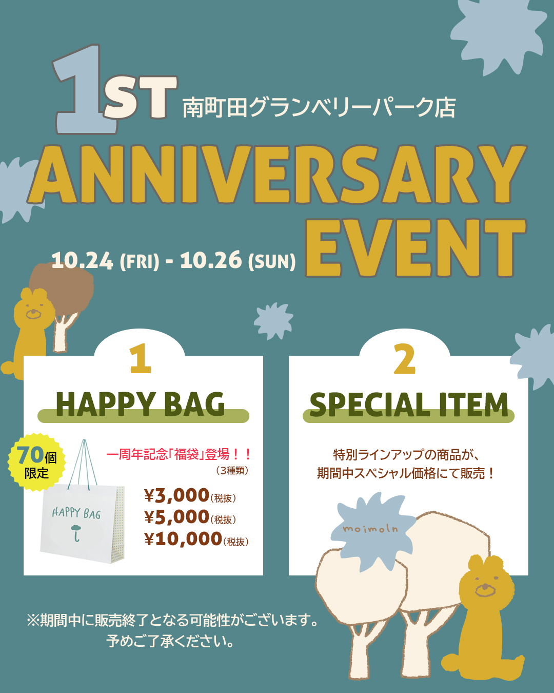 この節目を記念して、南町田グランベリーパーク店では1周年記念イベントを開催し、数量限定福袋やイベント限定アイテム特別セールなど特別企画を実施いたします。