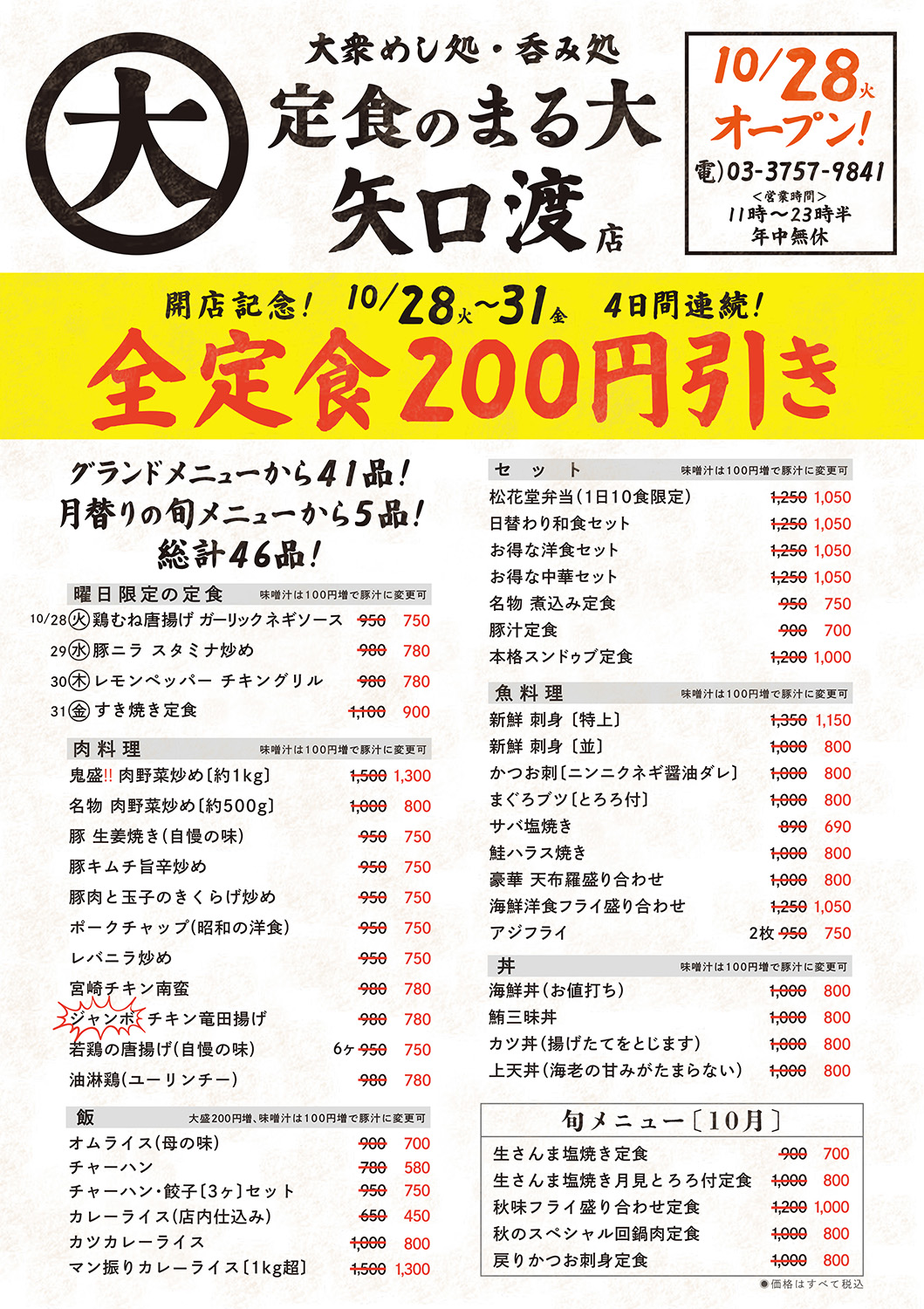 安い!旨い!満腹!全定食200円引きセール4日間限定!! 昭和な大衆食堂『定食のまる大』矢口渡店10/28オープン