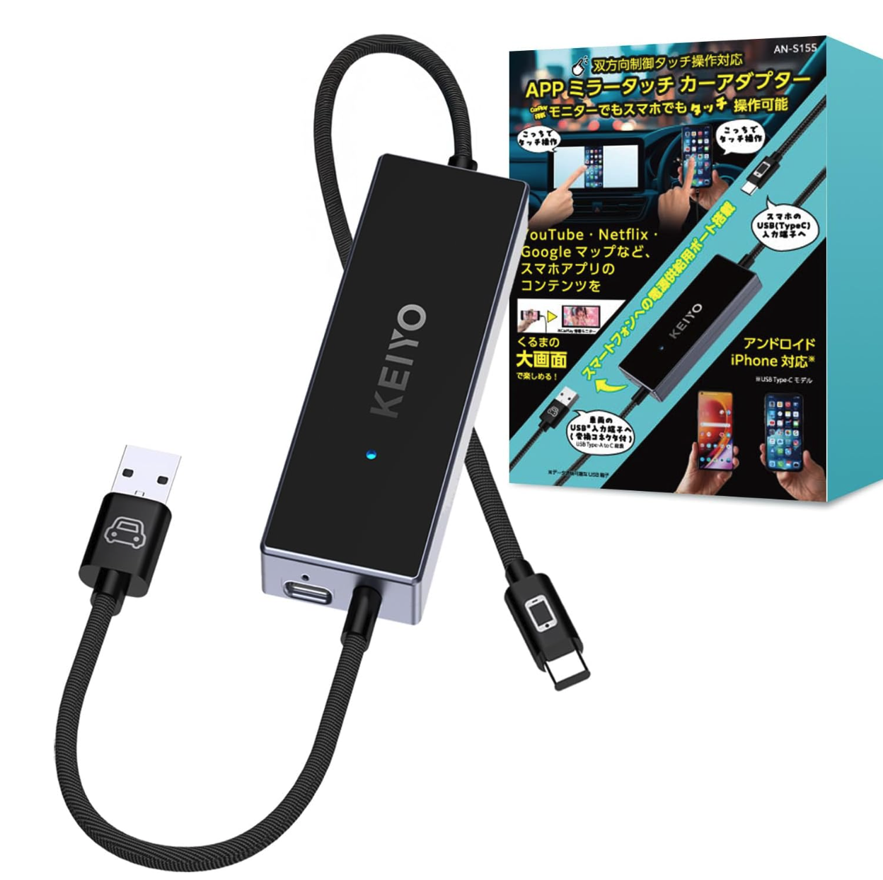 ミラーリングされたスマートフォンの画面を、車のタッチスクリーンから直接操作できるというものです。 通常、ミラーリングは一方的な表示のみですが、本製品を使えば、車の画面をタッチすることで、接続されたスマートフォンのアプリを操作したり、設定を変更したりすることが可能になります。
