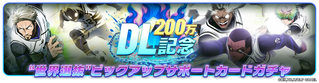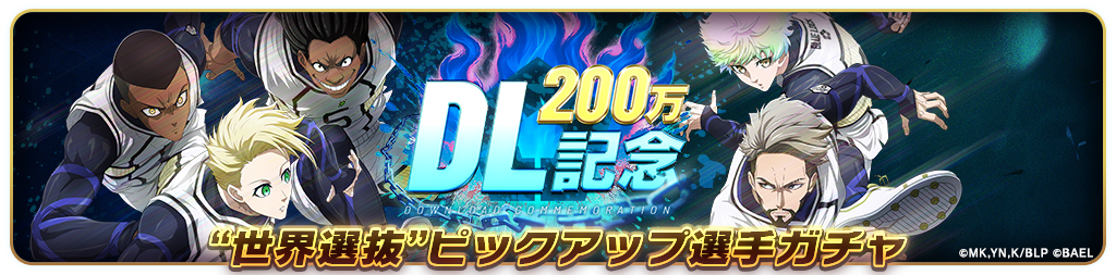 無償BLダイヤや「200万DL記念ガチャチケットパック」に含まれるガチャチケットで引ける、回数無制限の「世界選抜ピックアップ選手ガチャ」も同時開催します。