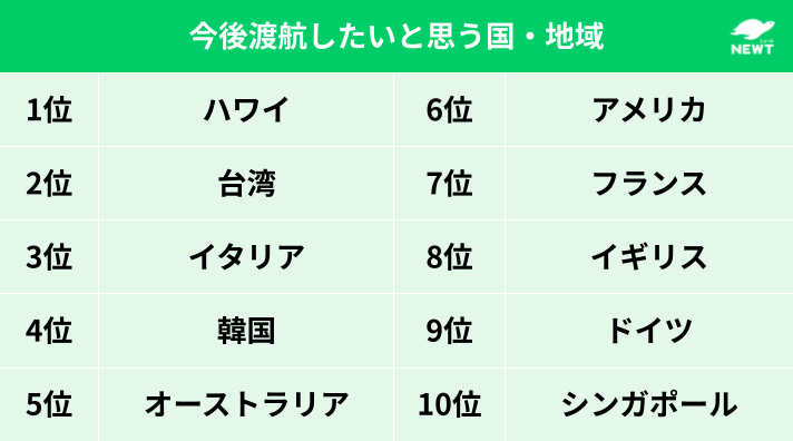 ■ 今後行きたい国・地域ランキング:1位はハワイ。ヨーロッパ人気も再燃