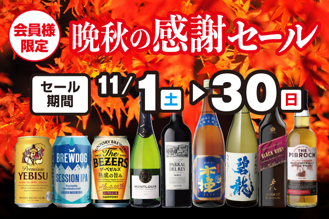 11月1日(土)からリカーマウンテン各店では「会員様限定 晩秋の感謝セール」を開催します
