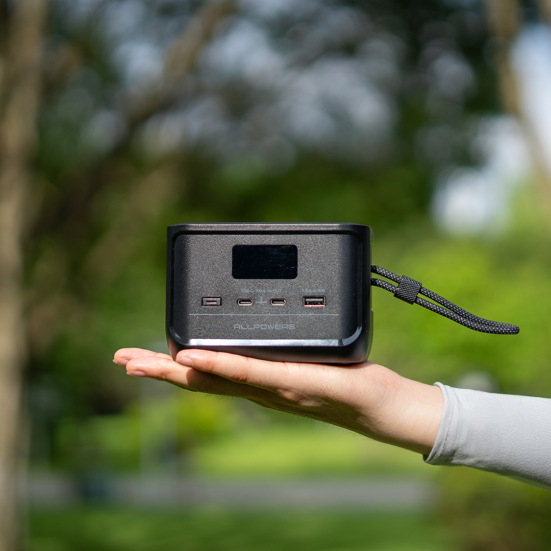 ALLPOWERS史上最小・最軽量モデル「SOLAX P100」は、容量99.2Wh・出力128Wのコンパクトポータブル電源。本体重量はわずか950gでペットボトル並みの軽さ。飛行機機内にも持ち込み可能なサイズ・容量を実現。