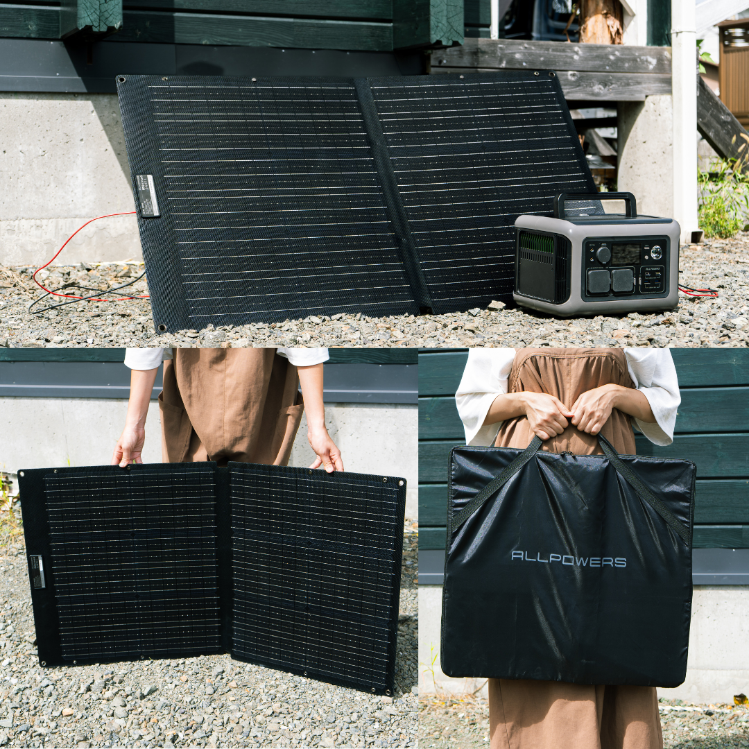 折りたたみ式で携帯性抜群。業界トップクラスの電力変換効率、最大25%のきわめて高い電力変換効率を備え、日照条件が悪い時でも効率的に発電します。ポータブル電源にソーラーパネルを併用して、太陽光発電を行うことで電気代を節約できます。