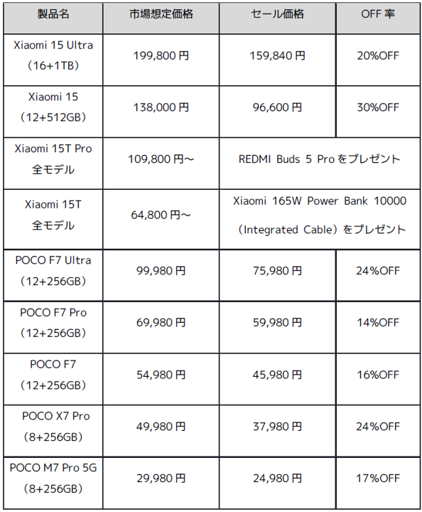 小米技術日本株式会社(以下「シャオミ・ジャパン」、本社:東京都港区)は、多様化するユーザーの暮らしに寄り添い、最新のフラッグシップスマートフォンをはじめ、ウェアラブル製品、スマート家電を対象にした特別セールを開催します。「Xiaomi ブラックフライデー2025」は、2025年11月21日(金)12:00から12月1日(月)23:59※まで、対象販路にて実施。Xiaomiの人気製品を最大51%OFFでご購入いただけます。
