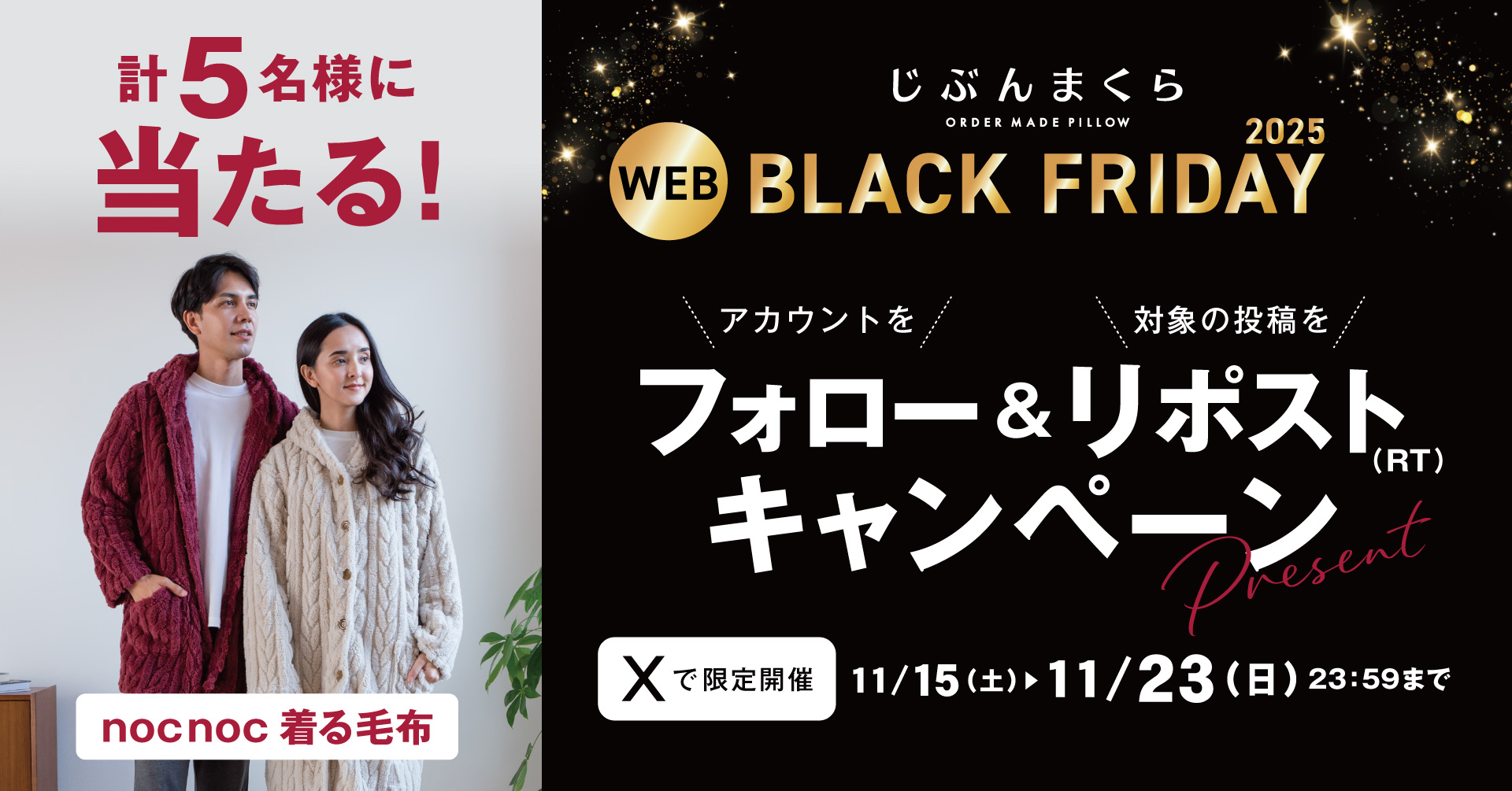 「オーダーメイドピロー・じぶんまくら」を手がける株式会社タナカふとんサービス(本社:愛知県一宮市)オンラインショップで「ブラックフライデー」セールを開催いたします。