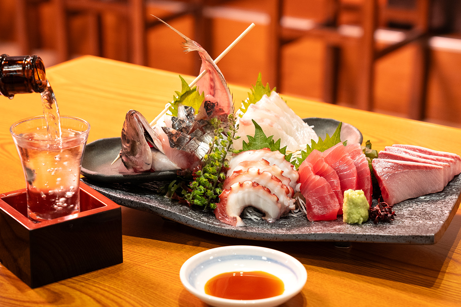 ・刺身盛り合わせ「大漁盛り〈八種〉」通常一人前1500円を半額の750円で提供