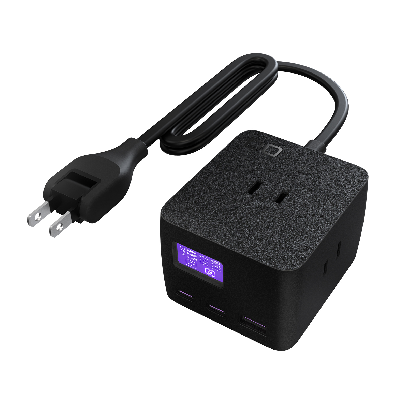 3口最大875Wの電源タップに最大67W、USB-C ×2、USB-A ×1を備えた充電器を一体化しました。各USBポートの充電速度をリアルタイムで確認できるスクリーンを搭載。
