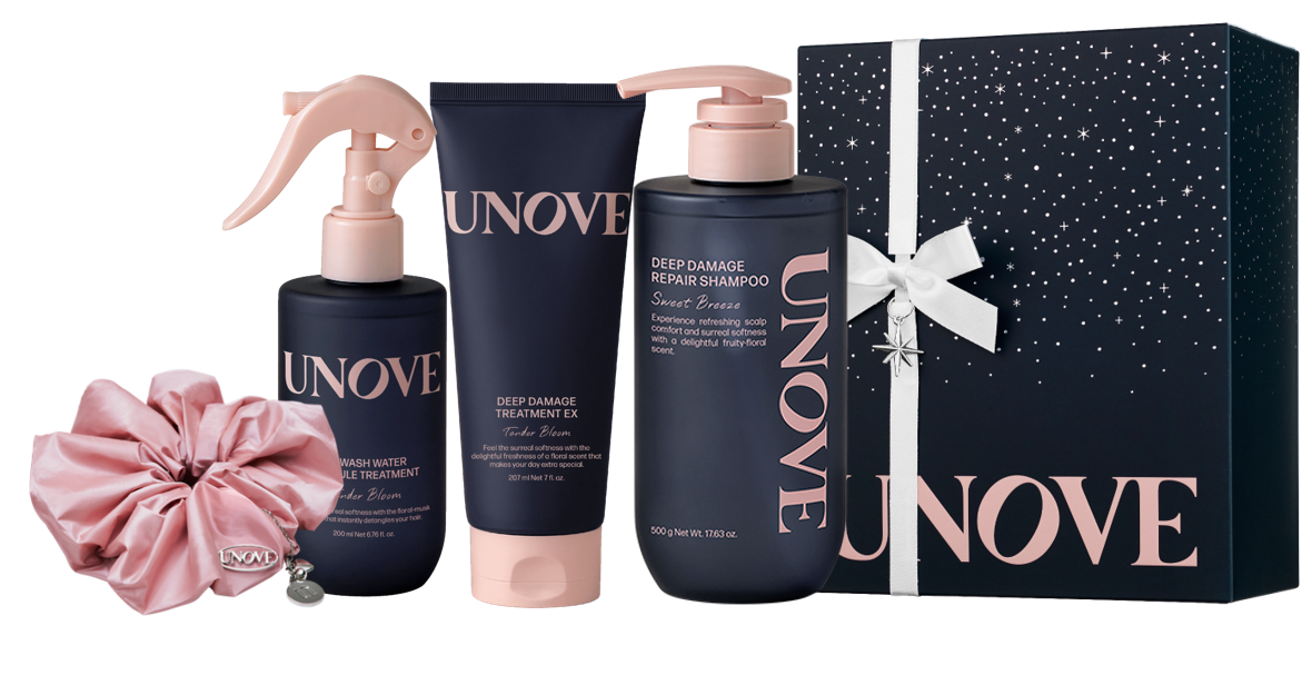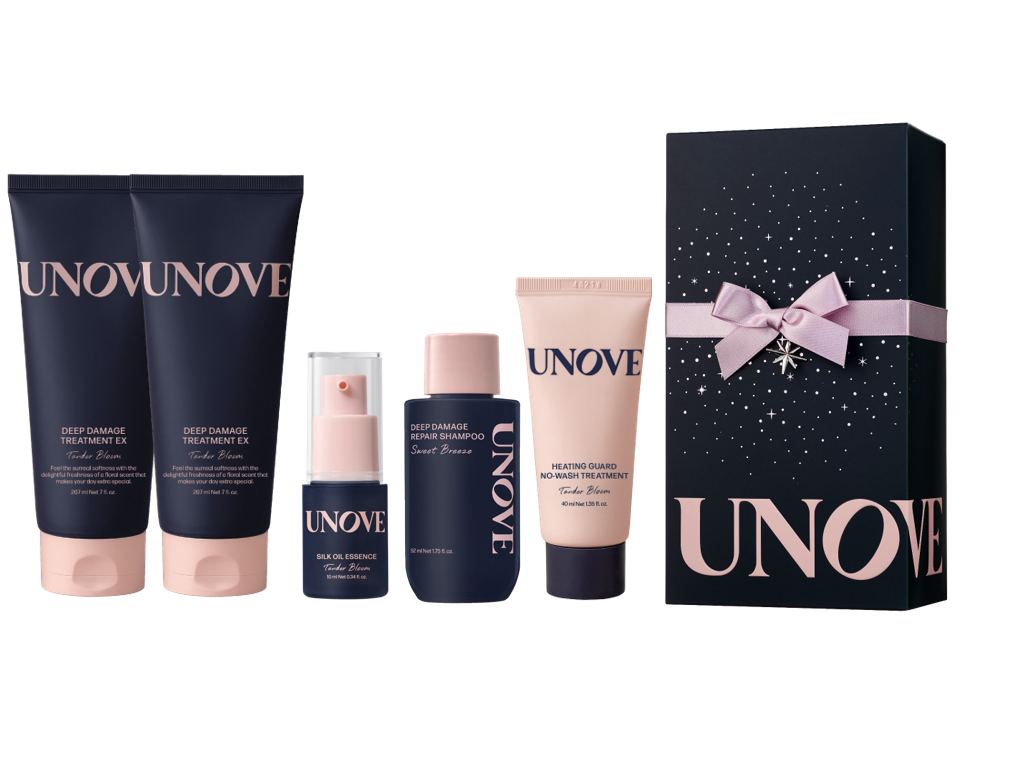 UNOVEのヘアケアラインは2019~2024年に韓国最大のHealth&Beautyチャンネルであるオリーブヤングシャンプー部門にて6年連続受賞した同社のグローバルヘアケアブランドDr.forhairの技術力で誕生したパーソナルケアブランドです。UNOVE (アノブ)は「羨望の柔らかな髪へ」導くために、ダメージ髪に潤いを与え、柔らかさや香りを基にムードをまとうことができるのが特徴です。
