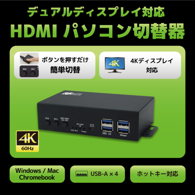 4K60Hz デュアルディスプレイ対応 HDMIパソコン切替器 RS-260UH2-4K