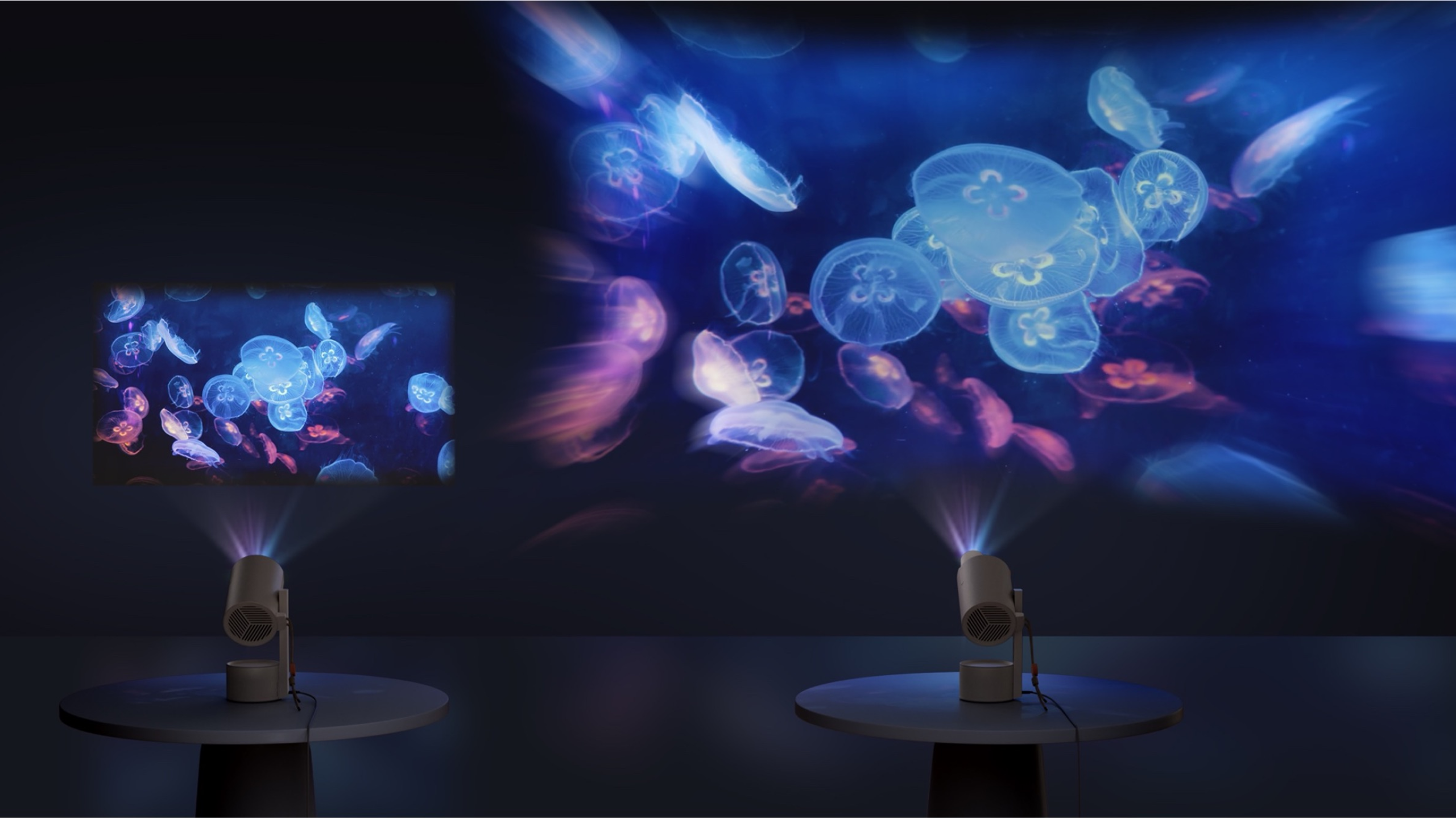 「MoGo 3 Pro」は、投射角度を自在に変更できるスタンド一体型で、天井投影が可能なプロジェクターです。ストラップ紐付きで携帯性に優れており、キャンプやアウトドアシーンにも最適な1台です。優れた音質を届けるHarman Kardonスピーカーの内蔵に加え、450ISOルーメンの明るさで、フルHDの解像度、ISA 2.0技術を搭載し、中断することなく台形補正とオートフォーカスを行うほか、スピーカーライトモードにより、映像視聴以外のシーンでも活躍します。また、別売りのマジカルレンズを使用すると画面サイズを5倍以上に拡大することができ、小さな空間でも200インチの没入感あふれる映像体験を可能にし、天井投影も可能なため、プラネタリウムのような体験も楽しめます。ヨーロッパで権威あるアワード「EISA(The Expert Imaging and Sound Association)Best Product 2024-2025」を受賞した世界でも注目の製品です。