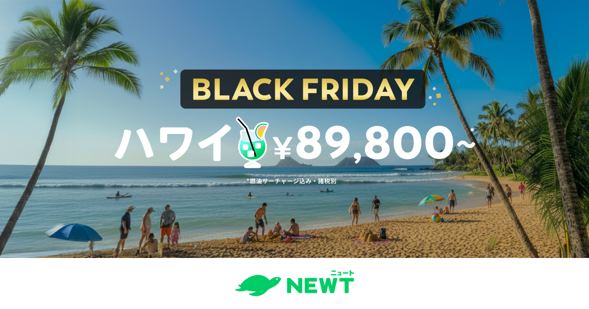 そこで『NEWT(ニュート)』では、冬のハワイを存分に楽しめるツアーを集めたハワイ特集をご用意しました。「BLACK FRIDAY」の期間のみハワイツアーを89,800円〜でご用意しています。豊富なラインナップの中から、あなたにぴったりの旅のスタイルを見つけてみてください。