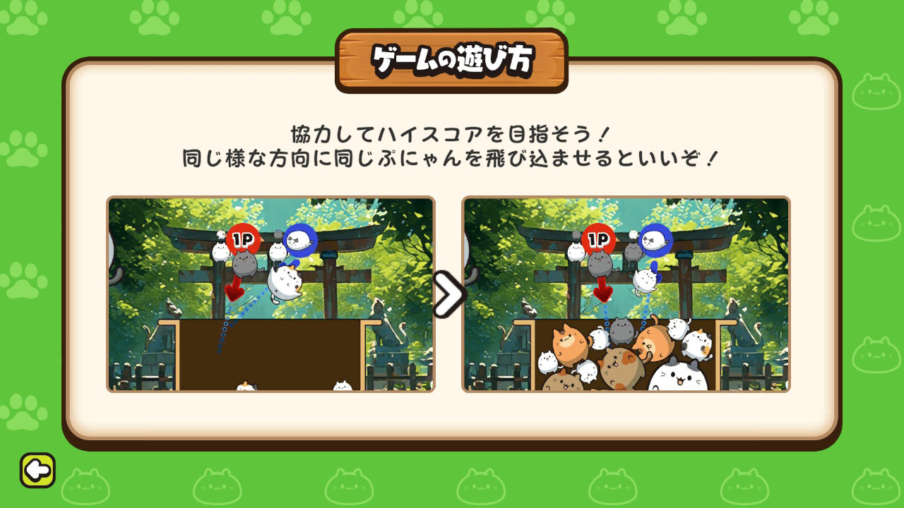 プレイヤーそれぞれが「ぷにゃん」を発射!みんなで協力してハイスコアを目指すモードです。