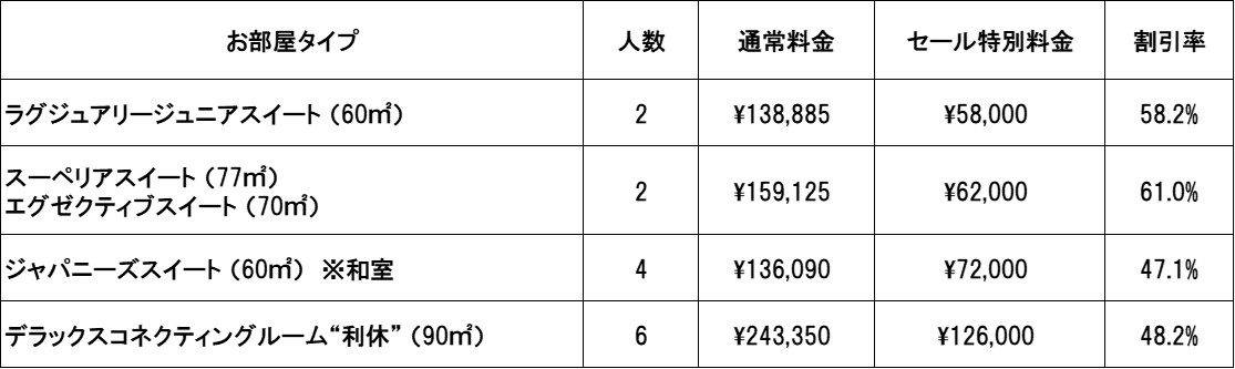 なかでもスイートルームは客室数にも限りがあるため早い者勝ちです!ご家族や大切な方、同僚たちと過ごすかけがえのない時間にご活用ください。