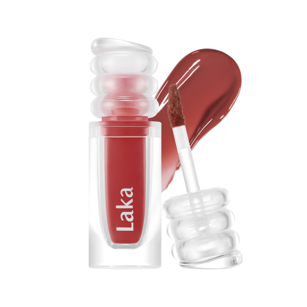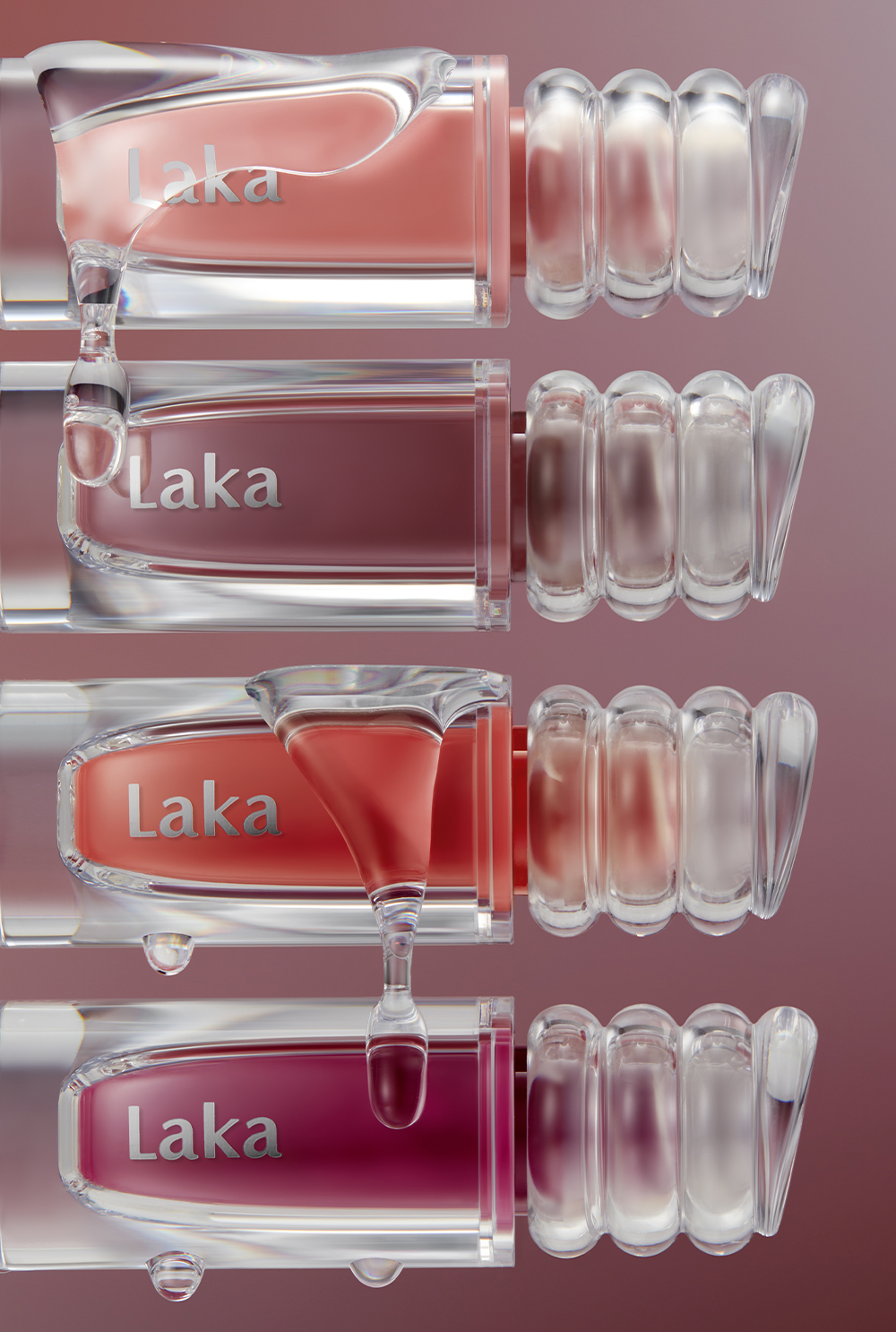 唇に触れた瞬間、透明な光沢感が広がり、ふっくらとした唇に導く Lakaの代表リップ