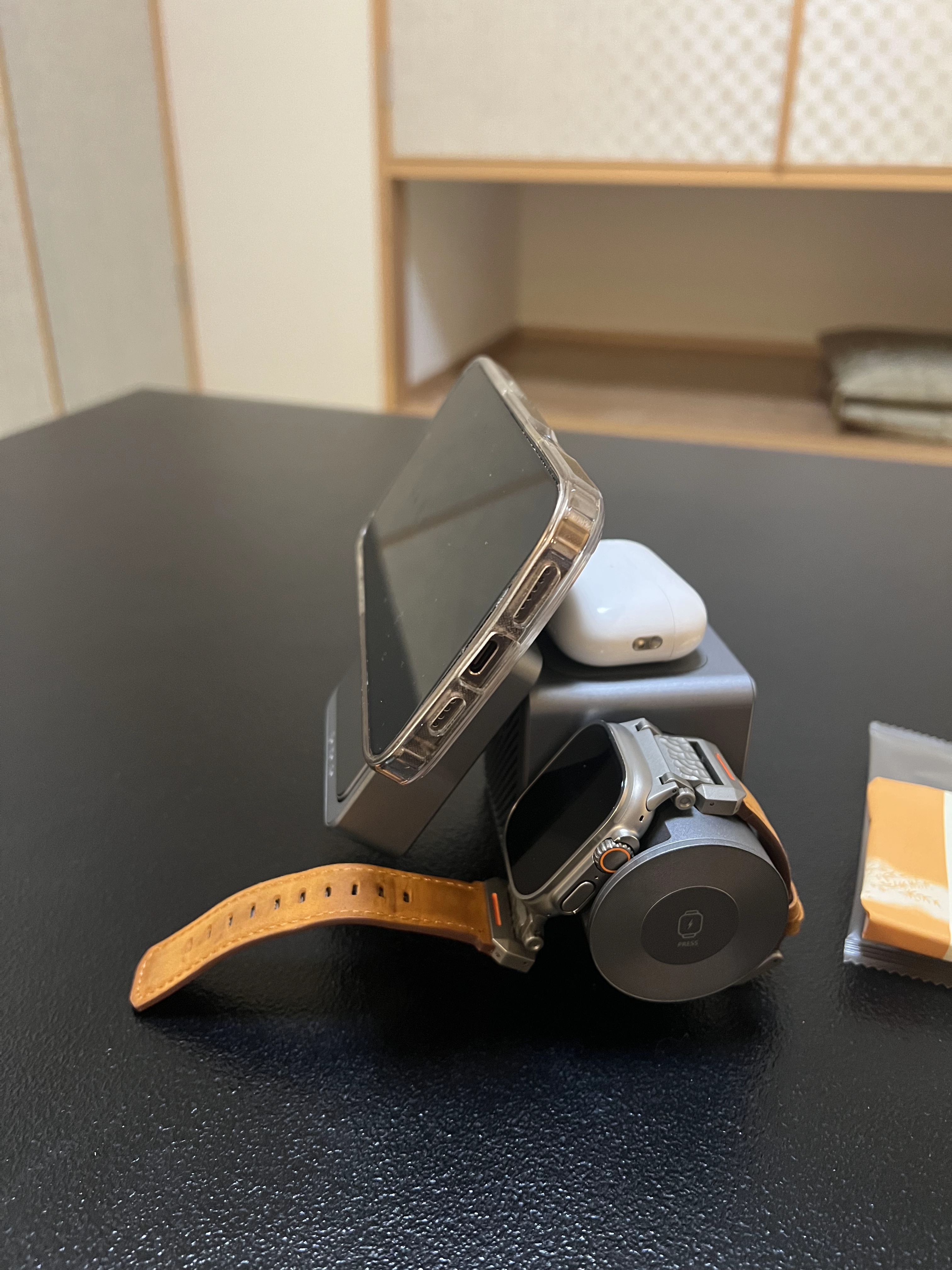 デスクに置くだけで充電が完結し、ケーブルまわりをすっきり整えられます
