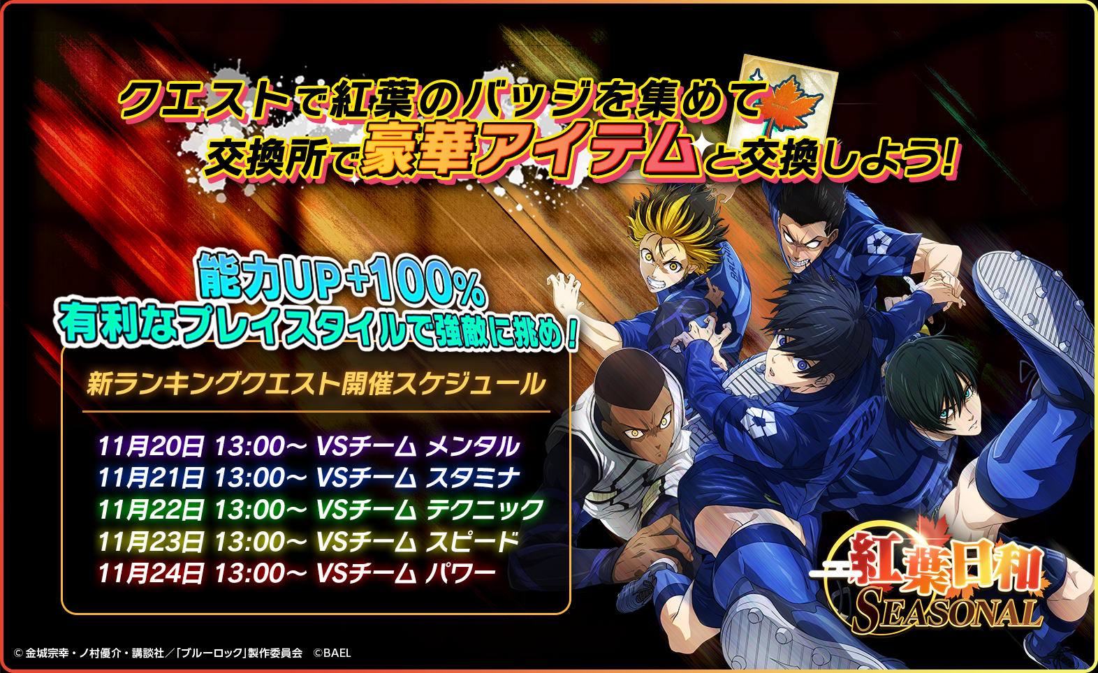 ・詳細はゲーム内のお知らせやブルーロック『BLAZE BATTLE』公式Xをご覧ください