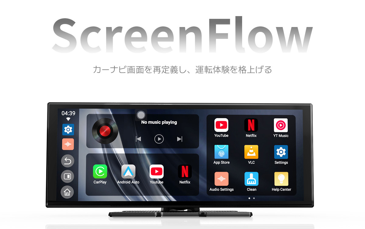 11.4インチの大画面ディスプレイと高解像度パネルを備えたポータブル車載ディスプレイ「Ottocast ScreenFlow」は、工事不要・置くだけで、いつもの車内を「動くシアター」に変えてくれる一台です。YouTubeやNetflixなどのストリーミングアプリを本体に内蔵し、ワイヤレスCarPlay/Android Autoにも対応。ナビ画面と動画を分割表示しながら使えるため、ルート案内を確認しつつ、同乗者はエンタメを楽しむといった使い方も可能です。配線に悩むことなく、年末のロングドライブや帰省の時間を、より快適で充実したひとときにアップデートできます。