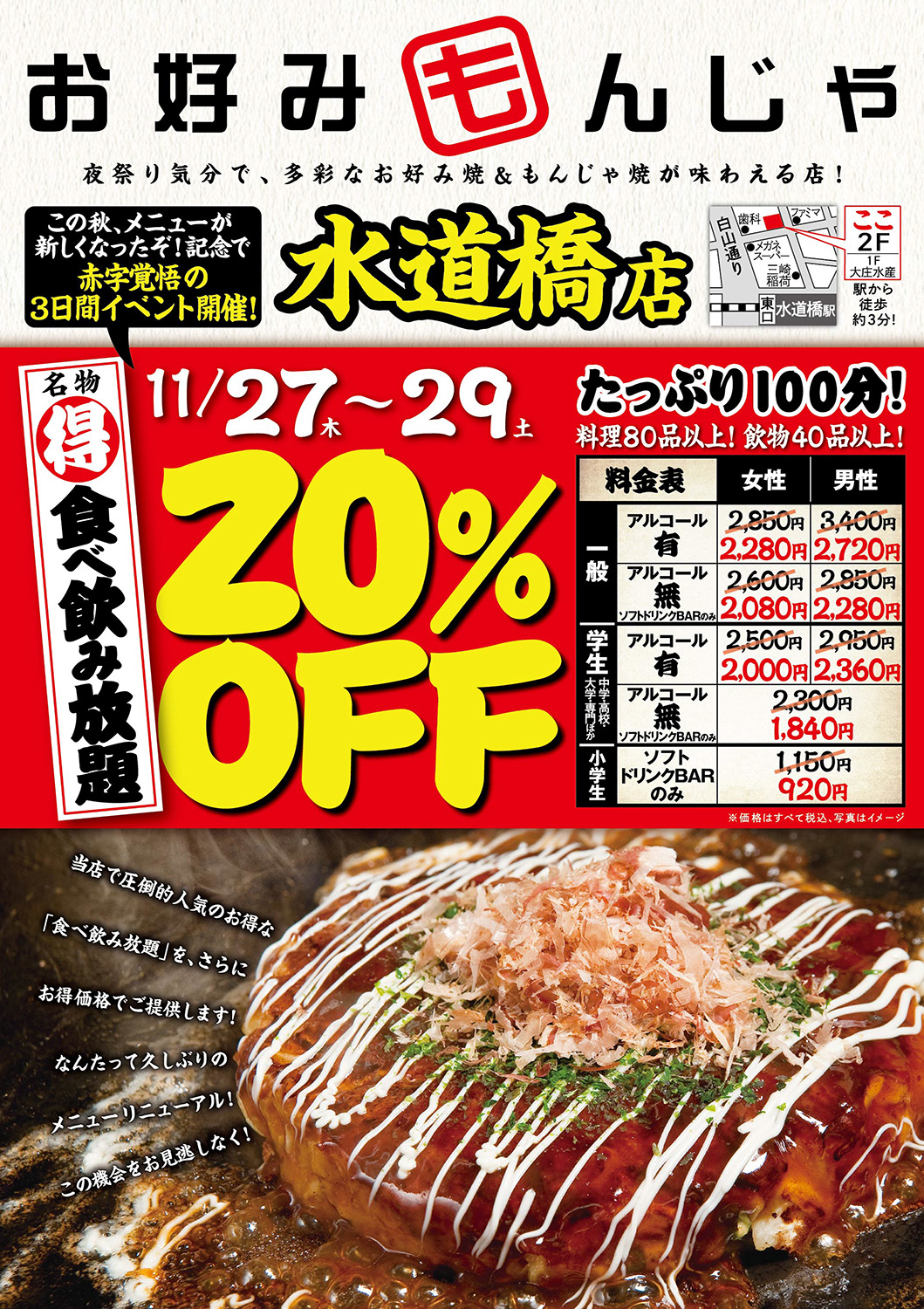 ◆実施店舗:『お好みもんじゃ』水道橋店 限定