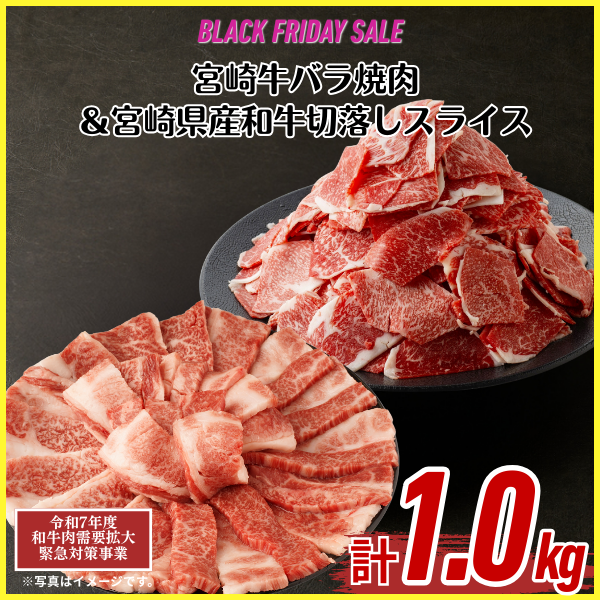 宮崎牛バラ焼肉&和牛切落しスライス計1kg