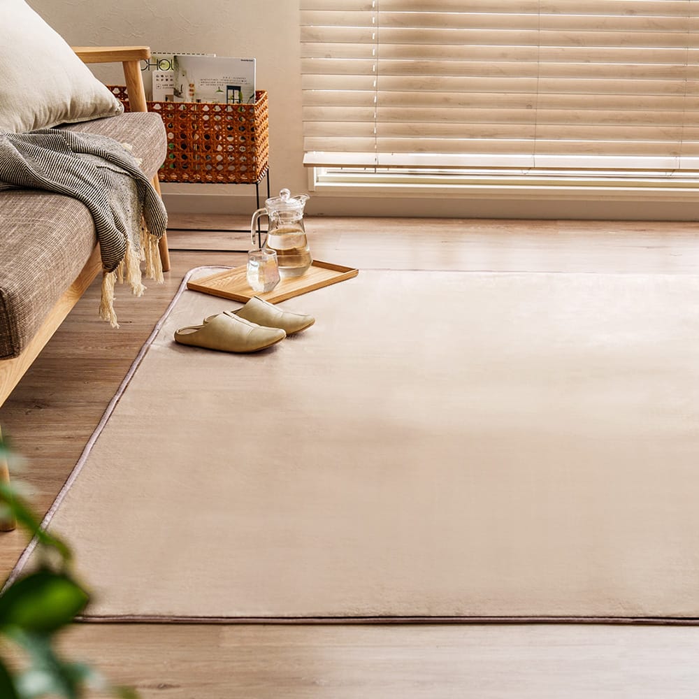 洗えて、防ダニ・撥水・滑り止め付き、子どもやペットのいるご家庭にも安心な高機能ラグです。