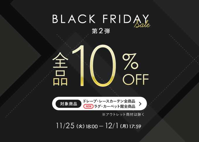 BLACK FRIDAY SALE第2弾では、ドレープカーテン・レースカーテンに加えて、ラグ・カーペット館の全商品が10%OFF!